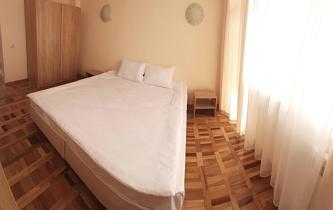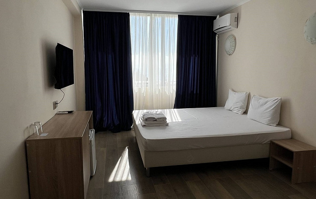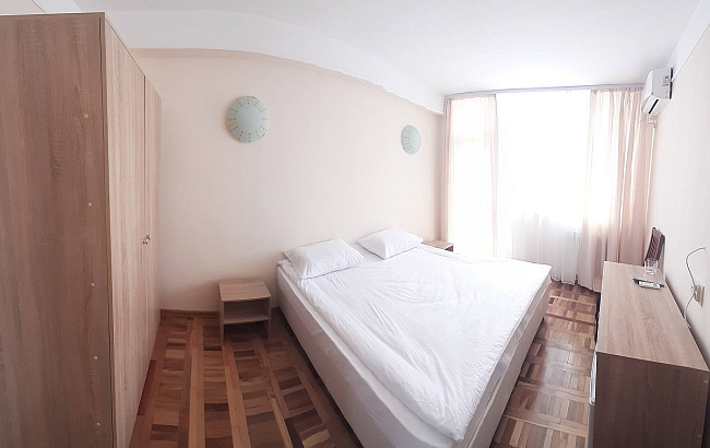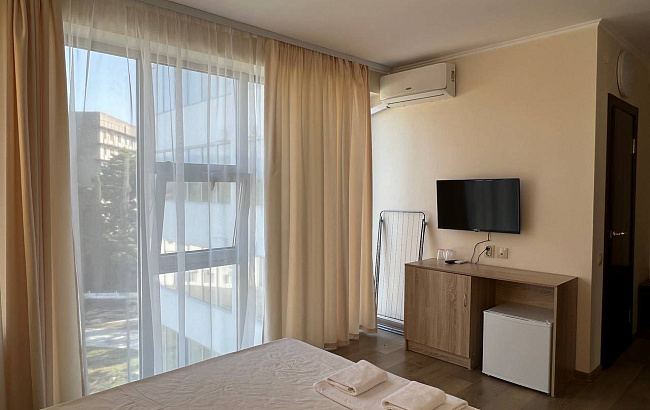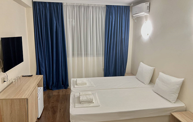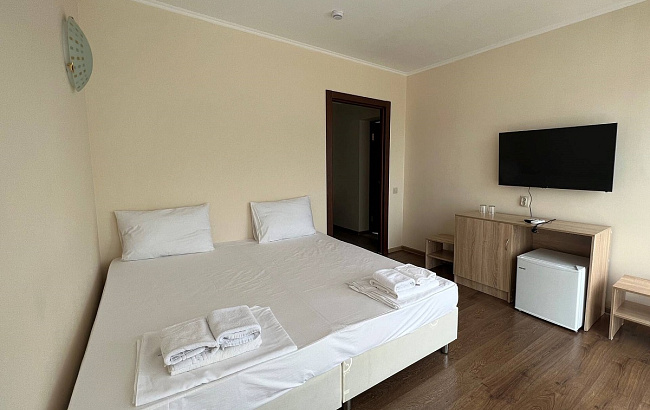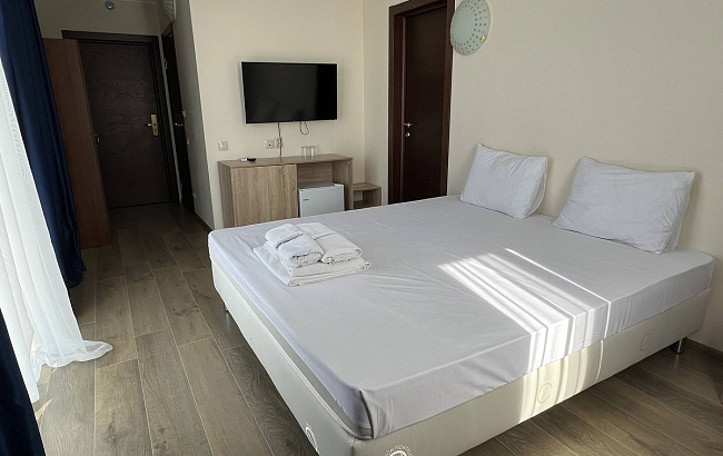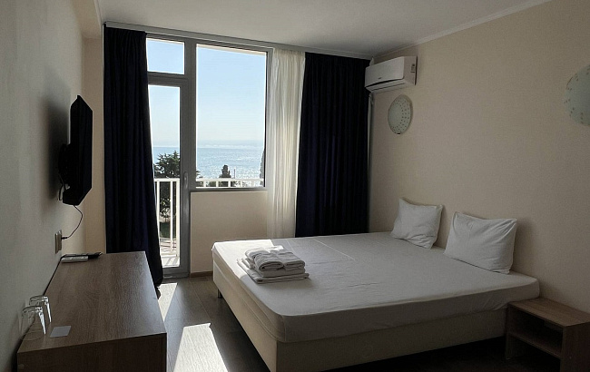 Площадь: 20 кв. м. В номере: двуспальная кровать (возможно разделить на две односпальные), телевизор, кондиционер, мини-холодильник, сейф, санузел с душем или ванной. Номер с видом на море / горы.