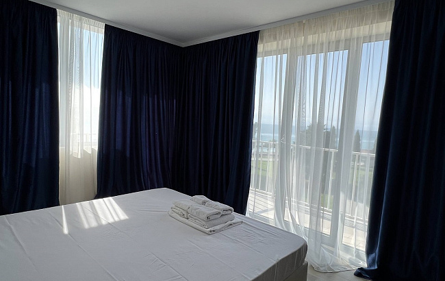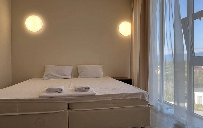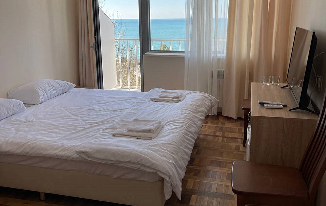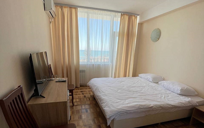 Площадь: 35 кв. м. В номере: 2 двуспальные кровати (возможно разделить на односпальные), телевизор, кондиционер, мини-холодильник, сейф, санузел с душем или ванной. Номер с видом на море / горы.